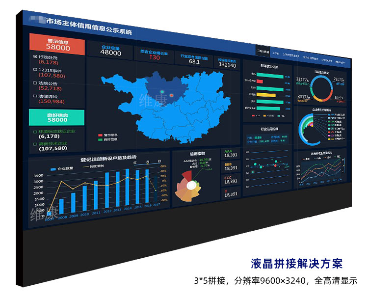 信息化展示的盛行,使得拼接大屏幕迎来新发展。如大数据显示、智慧中心、办公会议等场景纷纷投入拼接大屏幕的建设。大数据的袭来,组建智能化拼接屏大数据显示平台成为趋势。