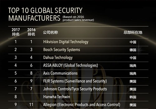 近期,2017全球安防品牌排名出炉,这份榜单是根据2016年各企业的销售收入进行排名,尽管今年“全球安防50强”榜单上名列前茅的公司与去年几乎相同,但有几点需要注意,海